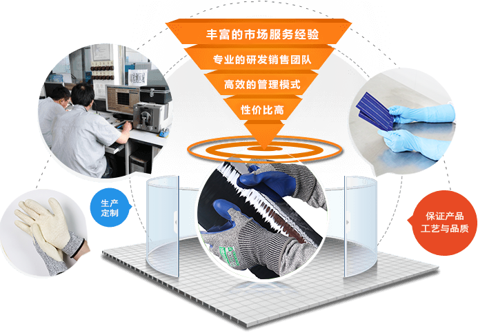手套芯采用凱夫拉材質(zhì),經(jīng)權(quán)威機(jī)構(gòu)檢測屬于5級防割標(biāo)準(zhǔn),針織采用無縫針織,針織密度高,防止硅粉及金屬碎屑進(jìn)入手背,手掌涂層采用壓紋設(shè)計(jì),具有良好的減震功能,手套制作完成以后經(jīng)過6次清洗工藝處理,經(jīng)權(quán)威機(jī)構(gòu)檢測表金屬雜質(zhì)低于45PPBW.